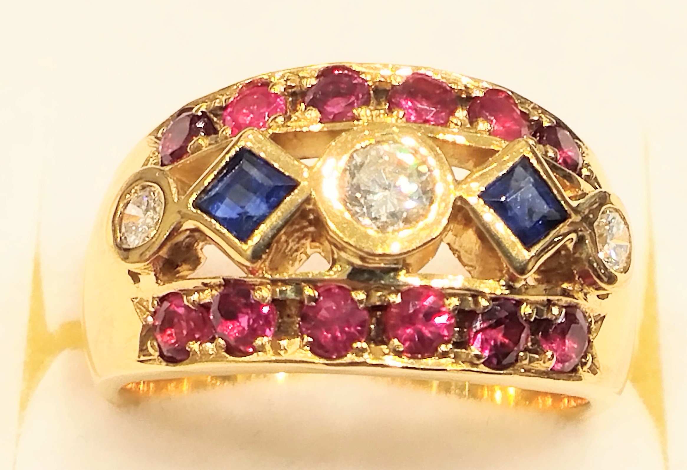 ダイヤモンド サファイア ルビー 18金 イエローゴールド リング
