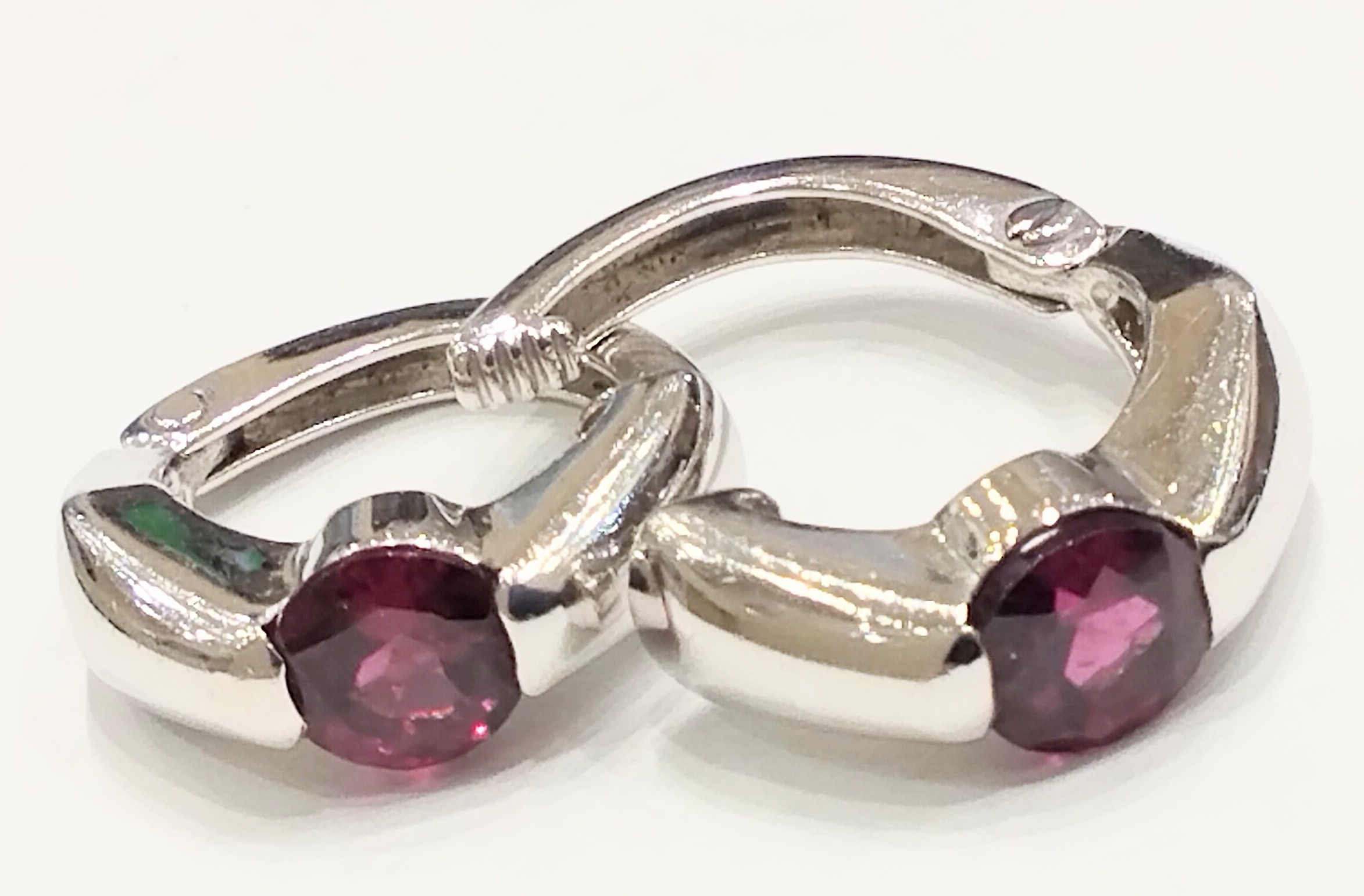 赤色石 18金 ホワイトゴールド イヤリング
