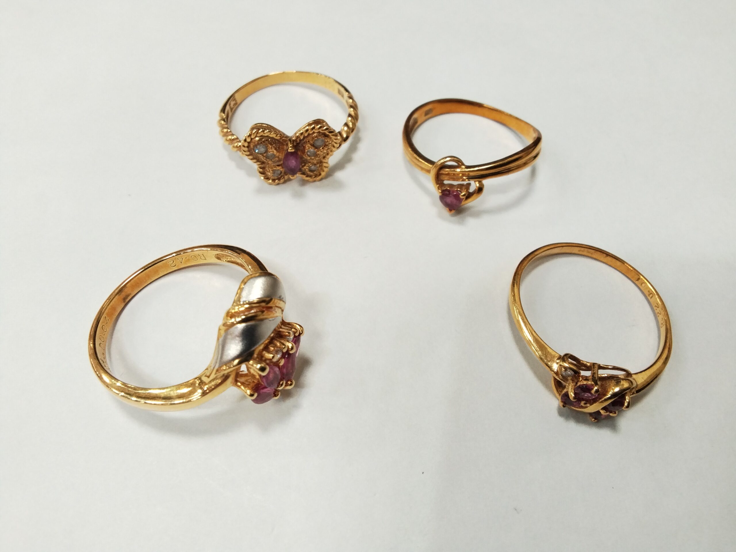 昔の立て爪デザインで、今はもう使わなくなった婚約指輪や結婚指輪。