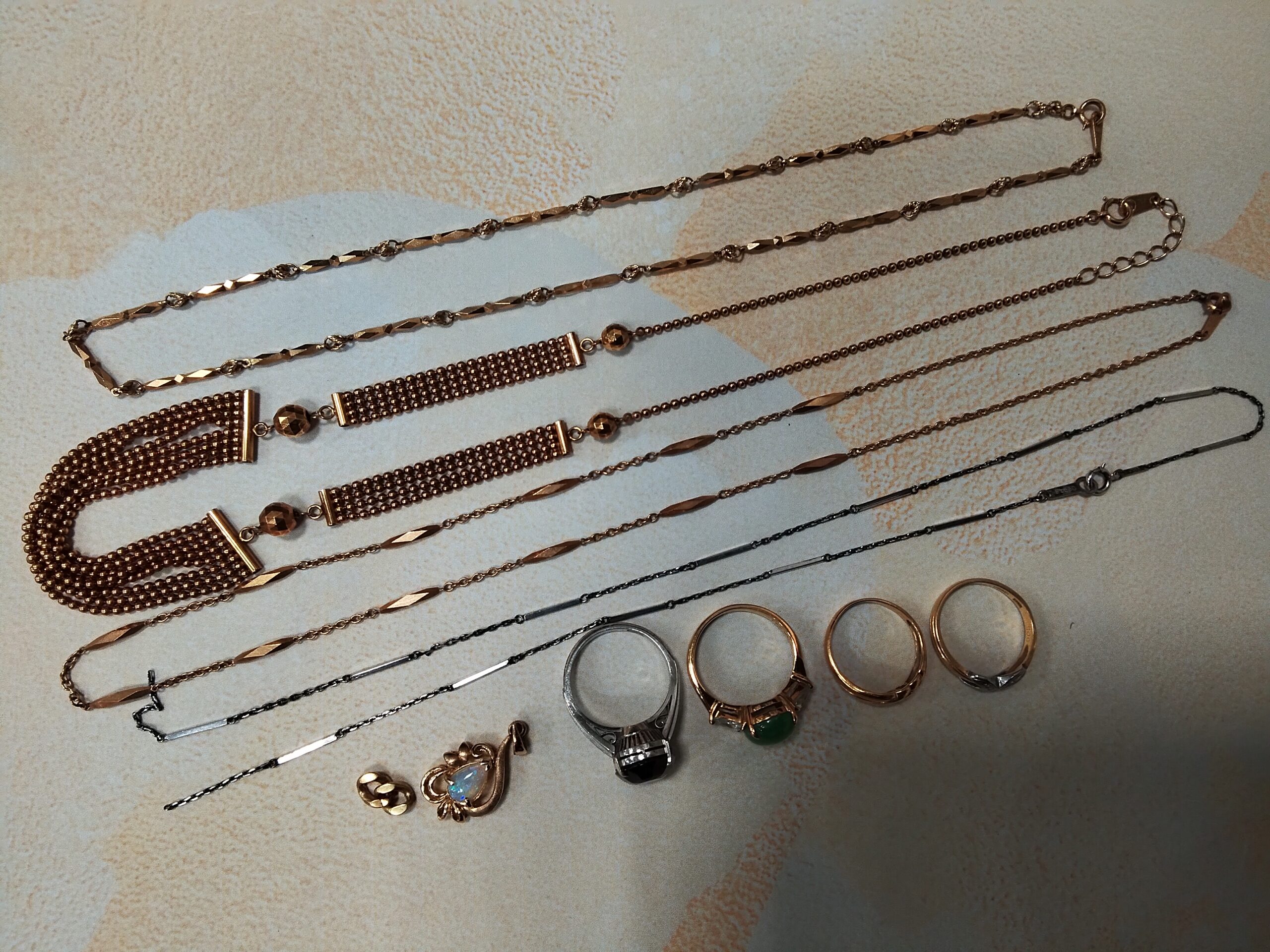 一点だけでなく、複数の金・貴金属製品をまとめてお売りいただくことで、買取価格を上乗せできる場合があります。リング一点、ネックレス一点で査定するよりも、まとめてお持ちいただくことで、一つ一つにプラスアルファの査定額をご提示しやすくなりますので、ぜひご検討ください。