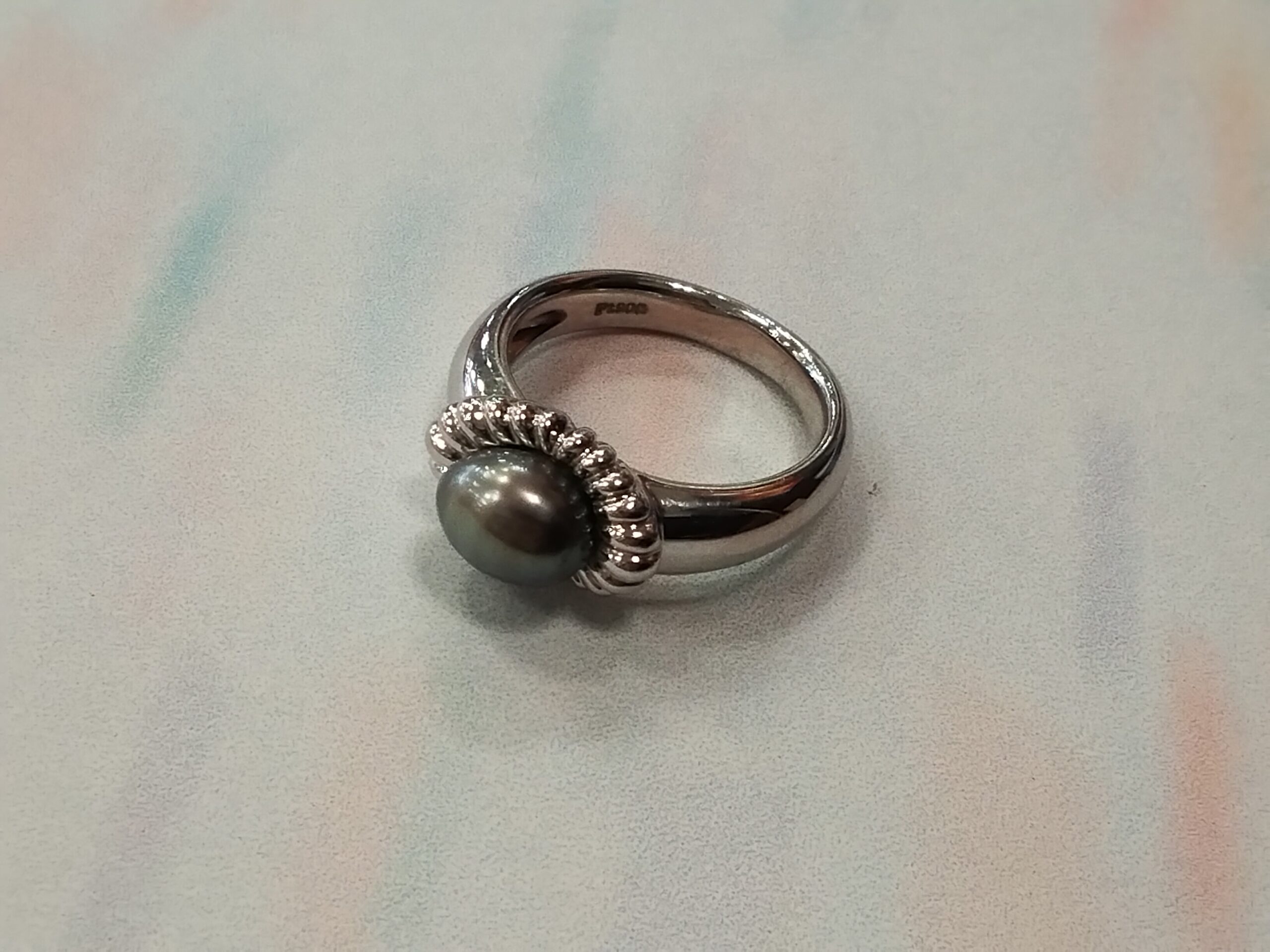 プラチナリング 黒パール