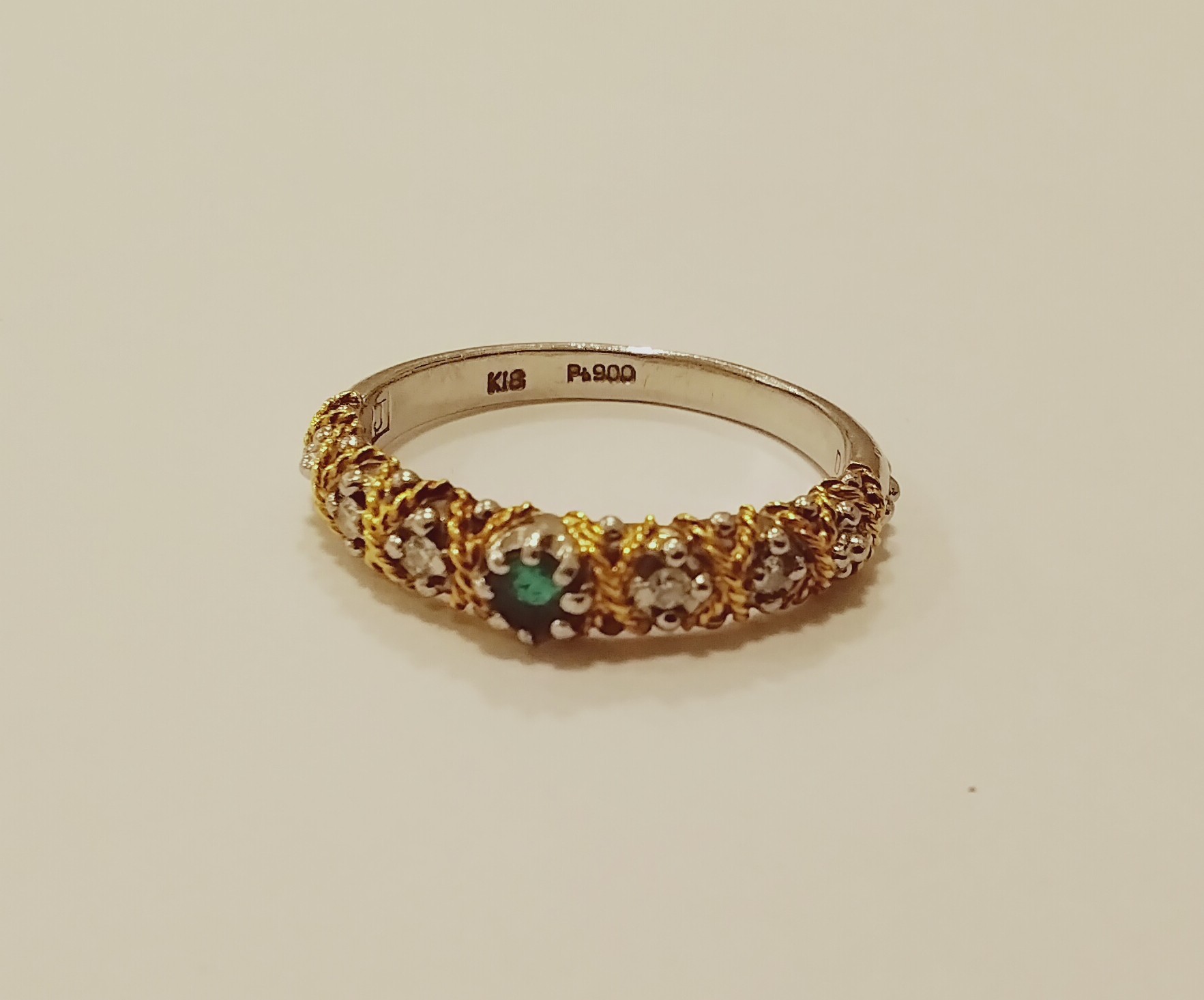 プラチナ900 18金 エメラルド リング